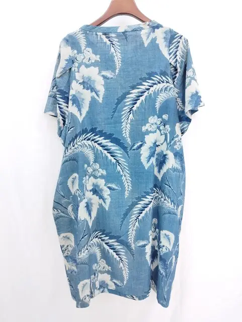 45R フォーティファイブアール 半袖ワンピース 0 インディゴ系 コットン100% 総柄 ボタニカル