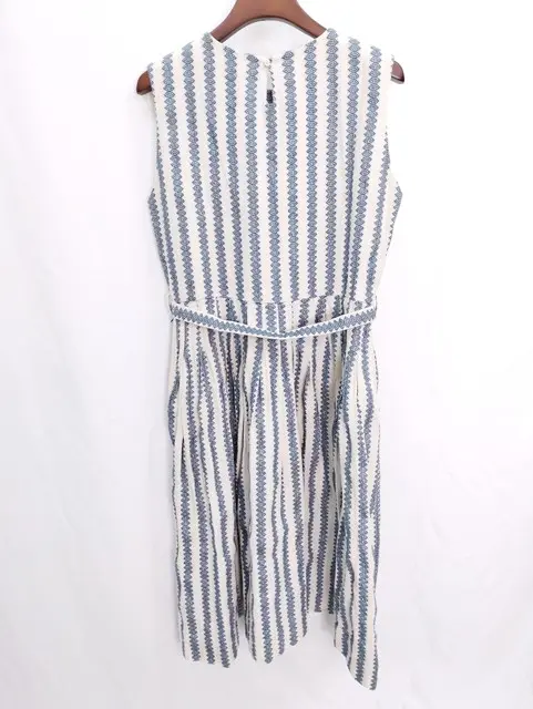 45R ノースリーブワンピース 2 クリーム系 刺繍 ストライプ コットン ベルト付き