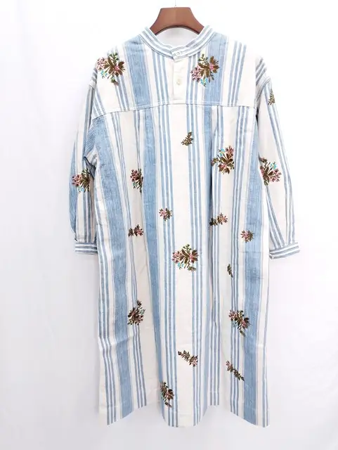 45R フォーティーファイブアール カディチノヒッコリーの刺繍ドレス ホワイト×ブルー 花 コットン ワンピース