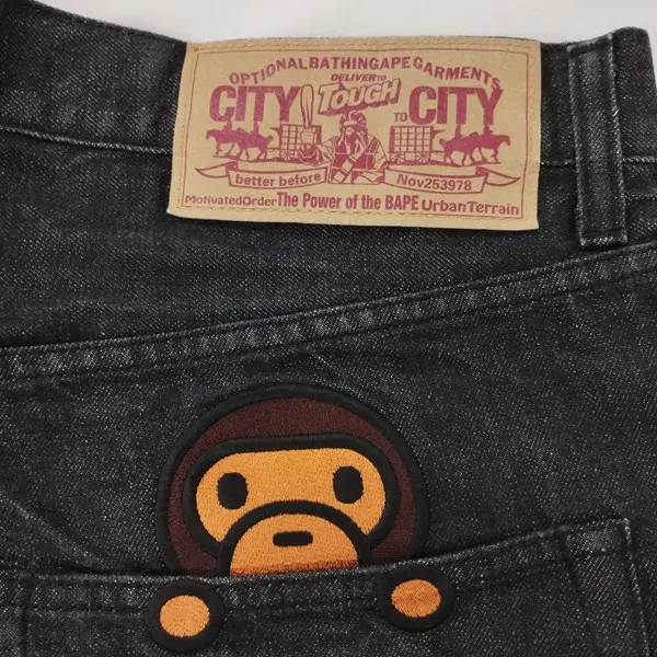 A BATHING APE アベイシングエイプ マイロ デニムパンツ L インディゴ 綿100 刺繍 日本製の買取金額