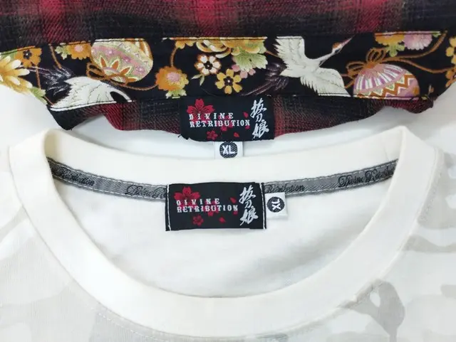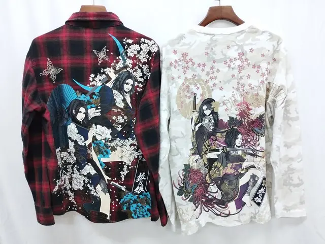 抜刀娘 バットウムスメ XL シャツ ブラック×レッド Tシャツ ホワイト系 和柄 チェック柄 長袖 計2点の買取金額