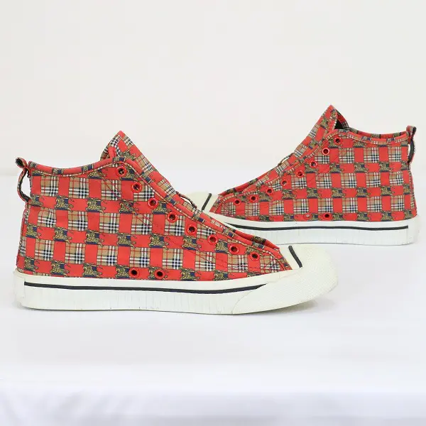 BURBERRY London バーバリー スニーカー 26.5cm ハイカット ノバチェック 騎士 レッド 箱付き