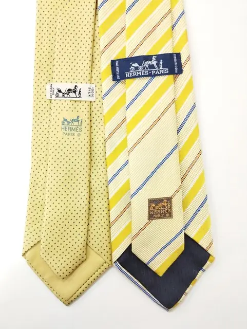 HERMES エルメス ネクタイ イエロー系 ドット レジメンタルストライプの買取金額