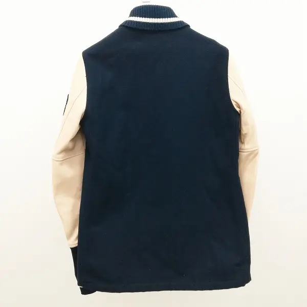 HYSTERIC GLAMOUR 袖レザー スタジャン FREE ネイビー×ベージュ 0124AB04 日本製 レディース