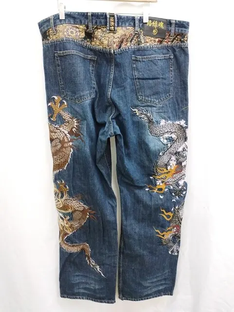 絡繰魂 カラクリタマシイ デニムパンツ 110 インディゴ 和柄 刺繍 龍 綿100%の買取金額