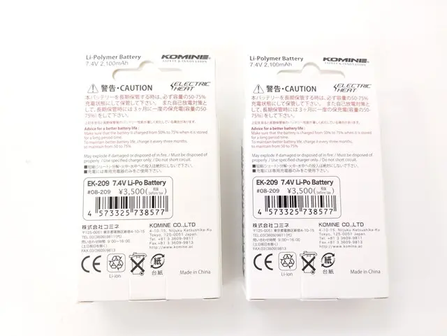 KOMINE コミネ ELECTRIC HEAT GROVES Li-Po BATTERY 7.4V 電熱グローブ用セット EK-207