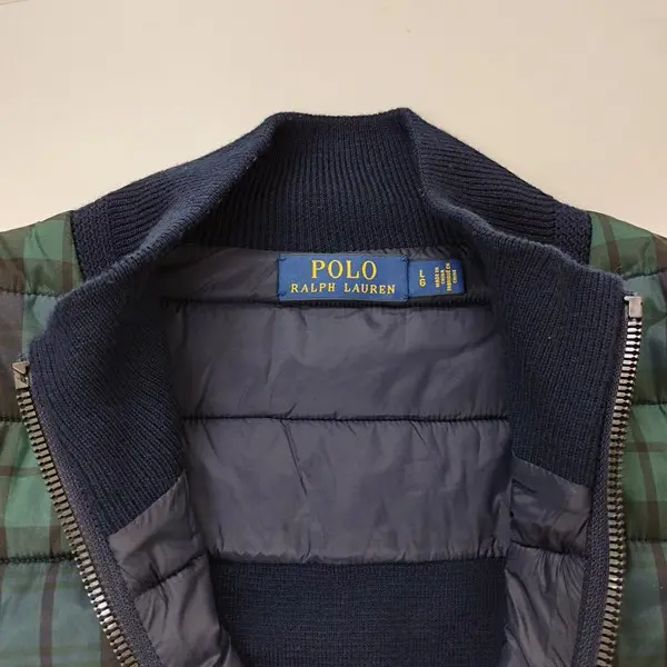 POLO RALPH LAUREN ポロ ラルフローレン 中綿ジャケット LG ネイビー系 ニット切替 ジップアップ チェック柄の買取金額