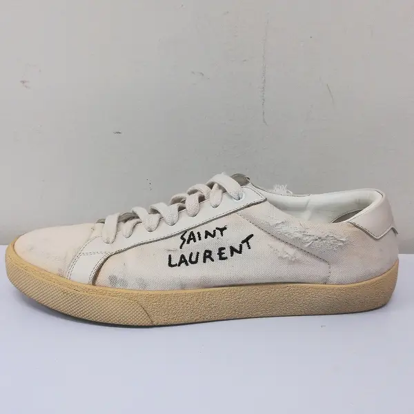SAINT LAURENT PARIS サンローラン パリ ヴィンテージ加工 キャンバススニーカー 41 ベージュ 471827の買取金額