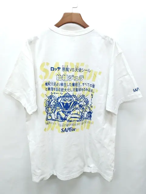 SAPEur サプール Tシャツ XL ホワイト系 始祖ジュラ 綿100% プリント ビックリマン ロッテ