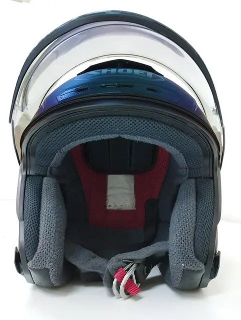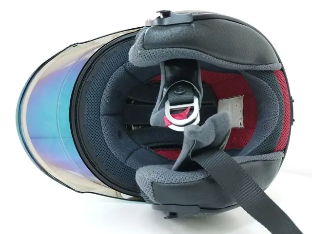 元々ヘルメットに付属していたシールドが外されており、別のシールドに付け替えてあります。